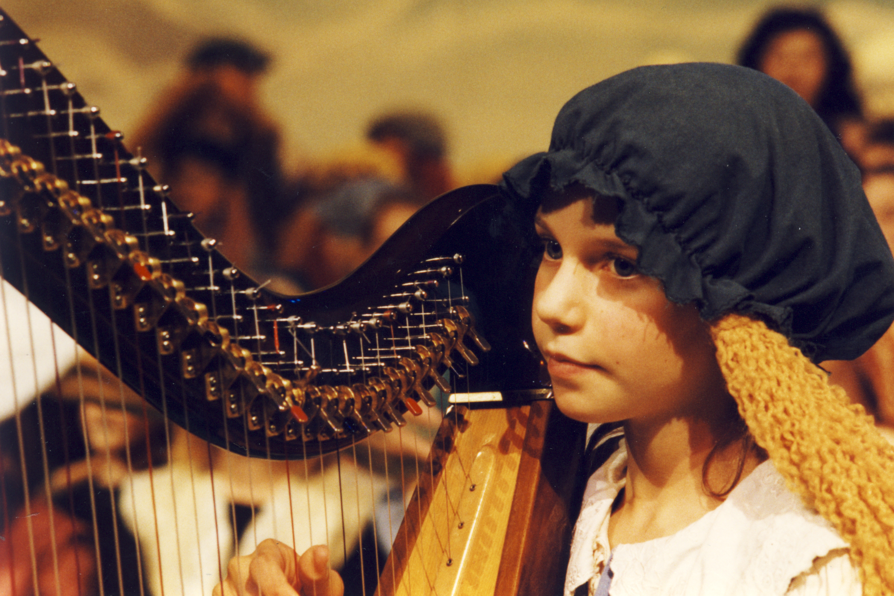 Instrumente: Flautino (Piccoloflöte oder Tin-Whistle), Horn in F, 2 Violinen, Akkordeon, Gitarre, 1–4 Harfen, Kontrabass, Schlagzeug