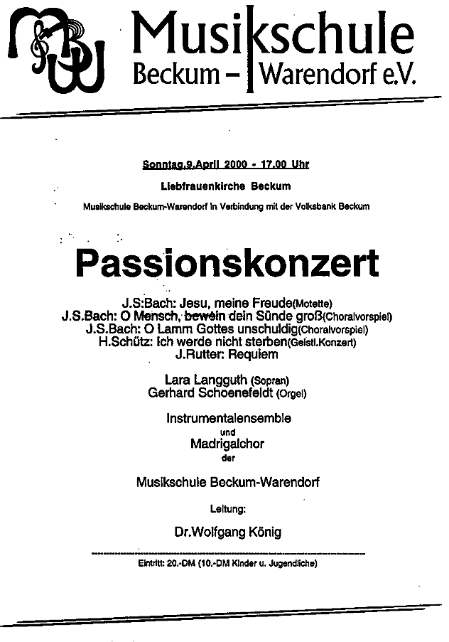 - Passionskonzert in Beckum (Liebfrauen-Kirche) und Sassenberg (St.Johannes)