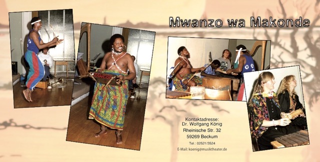 Dabei konnte ich bei „Mwanzo wa Makonde“ mit Hukwe Zawose auf den besten Musiker Tansanias zurückgreifen und mit John Mponda auf einen der besten Tänzer. Das ganze Projekt war ein wunderbares Erlebnis mit Aufführungen in Essen, Dortmund und Ahlen, und der Beginn einer engen Freundschaft und künstlerischen und menschlichen Zusammenarbeit bis heute.