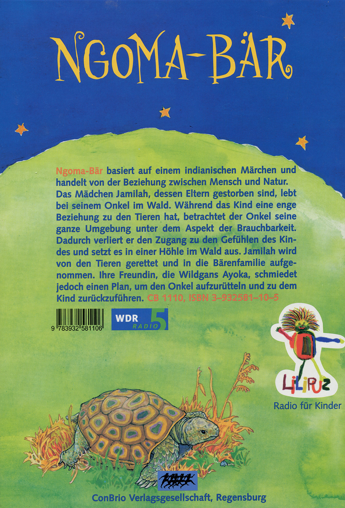 Ngoma-Bär basiert auf einem indianischen Märchen und handelt von der Beziehung zwischen Mensch und Natur. Das Mädchen Jamilah, dessen Eltern gestorben sind, lebt bei seinem Onkel, einem Jäger, im Wald. Während das Kind eine enge Beziehung zu den Tieren hat, betrachtet der Onkel seine ganze Umgebung unter dem Aspekt der Brauchbarkeit. Dadurch verliert er den Zugang zu den Gefühlen des Kindes und setzt es schließlich in einer Höhle im Wald aus. Jamilah wird von den Tieren gerettet und in die Bärenfamilie aufgenommen. Ihre Freundin, die Wildgans Ayoka, schmiedet jedoch einen Plan, um den Onkel dazu zu bewegen, das Kind wieder bei sich aufzunehmen.