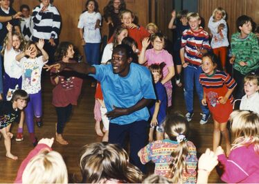 Neben Stücken für unseren Nachwuchs gibt es noch eine Kategorie mit internationalen Stücken. Seit 1992 haben wir regelmäßigen Kontakt zu einer tansanischen Musikgruppe. Daraus sind gemeinsame Produktionen entstanden, die wir zusammen mit unserem Chor in Bagamoyo (Tansania) aufgeführt haben und zusammen mit tansanischen Kindern hier bei uns – mit afrikanischen Liedern und Tänzen.